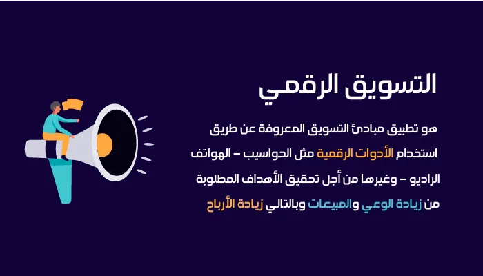 التسويق الرقمي هو استخدام كل ما هو متاح من وسائل التكنولوجيا الحديثة وعلى رأسها الإنترنت من أجل الوصول للعميل المحتمل وتوصيل الرسالة التسويقية له، وذلك من أجل الحصول على المزيد من المبيعات. وهو بالإنجليزية Digital Marketing (ديجيتال ماركتنج).